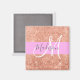 Glam and girly pink, peach, gold glitter sparkles white monogram name and initial magnet. Your custom name and monogram are written in an elegant hand lettered script with a pink background. You can change the text color and font style and size using the customize option. A perfect birthday or Christmas gift!