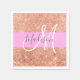 Glam and girly pink, peach, gold glitter sparkles white monogram name and initial napkins. Your custom name and monogram are written in an elegant hand lettered script with a pink background. You can change the text colour and font style and size using the customise option. Perfect for a birthday or Christmas party!