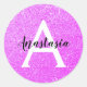 Girly Glam Purple Glitter Sparkles Monogram Name Classic Round Sticker