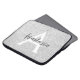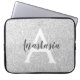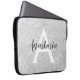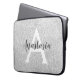 Girly and glam silver glitter sparkles monogram name and initial computer sleeve. Personalise with your custom name in grey and your monogram initial in white. You can change the text colour and font style and size using the customise option.