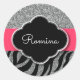 Girly Glitter Pink Zebra Pattern Personalised Name Classic Round Sticker