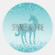 Girly Glitz Aqua Turquoise Glitter Unicorn Classic Round Sticker