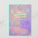 Celebrate in glowing style with this dreamy glow slumber birthday invitation! Featuring a pastel neon palette, this design includes a disco ball, fluffy pillows, and a glowing record player, perfect for music-loving tweens who want a cosy, stylish birthday sleepover. The soft lavender and peach tones mixed with glowing stars and music notes create a fun and magical vibe. Personalise with your party details and get ready for a night of games, cake, and dance-worthy tunes!