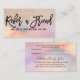 This is the perfect Refer a Friend Discount Card for a trendy, stylish, and modern business. This design features chic, girly, and pretty black brushstroke typography on a glamourous and girly faux printed gold glitter with pink, peach, blue, and purple iridescent holographic ombre gradient background. These cards will add that personal and professional touch to your business and career advertisement.