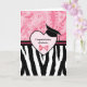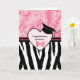 A girly graduation congratulations card with a cute pink and black background of a trendy zebra print on the bottom and a pink paisley style floral pattern on the top. Written in the centre of a heart with a graduation cap is: Congratulations Graduate.