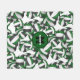 This fun team colours volleyball fleece blanket for girls features a pattern of stylised green, black and white volleyballs of varying sizes turned every which way on a customisable white background - the volleyballs' green and black panels are blended with an artsy, girly floral pattern - personalise with athlete's name and monogram or jersey number - by katz_d_zynes