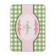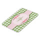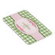 A cute country style green gingham monogram flexible magnet with a pink gingham label and a girly filigree pink ribbon. Personalise by adding your name and initials. Will appeal to the stylish and feminine girl.