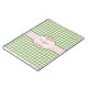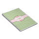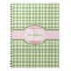 A cute country style green gingham monogram notebook with a pink gingham label and a girly filigree pink ribbon. Personalise by adding your name and initials. Will appeal to the stylish and feminine girl.