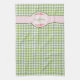 A cute country style green gingham monogram towel with a pink gingham label and a girly filigree pink ribbon. Personalise by adding your name and initials. Will appeal to the stylish and feminine girl.