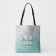 Girly Green Silver Ombre Glitter Monogram Name Tote Bag