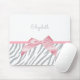 A trendy grey tiger stripes pattern mousepad embellished with a picture of a girly pink satin bow. Personalise by adding the name of your favourite girl. Flat printed image, NOT affixed with an actual ribbon.
