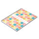A girly square tile pattern notebook with modern style rounded corners in pretty spring colours, decorated with cute hearts and retro daisy flowers. Personalise by adding the name of any girlie girl to this retro mod paper tablet in shades of coral pink goldenrod yellow, and turquoise blue. Original Art copyright of ©OhSoGirly