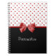 A girly notebook with cute red hearts and trendy polka dots. Personalise by adding your name. Perfect for a stylish teen girl into fun and fashion! Image is flat without literal embellishments.