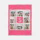 Girly Hot Pink 8 Photo Collage White Monogram Fleece Blanket