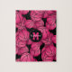 This pink and black girls' basketball jigsaw puzzle features a pattern of varied size hot pink basketballs on a black background - customise with basketball player's name and monogram - by katz_d_zynes