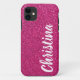 Girly Hot Pink Glitter Name Personalised Case-Mate iPhone Case