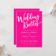 This girly wedding invitation features a hot pink and white colour scheme. It is paired with sans serif and script fonts, laying out the funny pun heading 'Wedding Belles', the participant's names, and details of the wedding, including the location, date and time. The stand-out features are the large headline, and the modern monogram on the back. ⚠ The heading font is Singapore. To use special characters, copy them from www.zazzle.com/singapore_font_ligatures_poster-228436244039070899 ⚠ Browse my collection for matching envelopes and stationery. ••• For more wedding suites, visit my store Zazzle.com/EventsByJessicaAmber