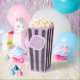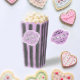 These Fun Retro Popcorn Favour Boxes feature a charming, classic retro design with pastel lavender pink and dark grey striped paintbrush patterns, perfect for evoking a nostalgic movie night vibe. The front of the box showcases a vintage blush pink circle with a white border, displaying editable text in a stylish, retro white font with a purple shadow outline. On the reverse side, the birthday person’s name is featured in the same vintage-style font, complemented by customisable text in a clean and simple typeface. Explore various colour options and check out our complete collection of movie-themed birthday party supplies and invitations to make your event even more memorable!