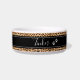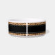 Style up your pet's meals with this Girly Leopard Print Personalised Pet Bowl. It is a modern design with black and brown animal print background and customised with pet's name in white trendy hand lettered script on the front centre of black stripe. Two cute small paw prints are on the side of the text. Click personalise template option and enter name.