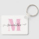 A bold light pink monogram with white polka dots paired with a cute curly swash signature name for your keychain.