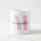 Girly Light Pink and White Polka Dot Monogram Large Coffee Mug