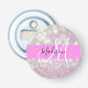Girly pastel lilac shimmer bokeh glitter sparkles monogram name and initial bottle opener. Your custom name and monogram are written in an elegant hand lettered script with a pink background. A perfect birthday or Christmas gift!