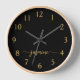Girly Simple Minimalist Black And Gold Monogram Name Script Custom Personalised Square Wall Clock. These design featuring your first name in a pretty hand lettered style swash tail font signature typography on black and gold. These are easy to customise it. Great stylish feminine housewarming gift, also for birthday, wedding, bridal shower, mother’s day, sweet 16 birthday party and baby shower, graduation and It’s for the girl who loves unique sparkle stylish things.