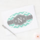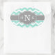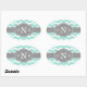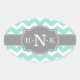 Girly Mint Chevron Grey Monogram Oval Sticker