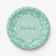 Girly Mint Green Giraffe Print Monogram and Name Paper Plate