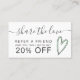 Makeup hair girly pastel mint green heart script font share the love professional referral card. the hearts colors are fully editable.