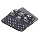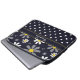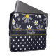 A Laptop Sleeve 13 inch with a girly retro mod flower pattern on the top with white daisies with yellow centres against a navy blue background, and a trendy blue and white polka dot pattern on the bottom. Personalise by adding your name. Perfect present for a stylish girly girl.
