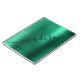 Modern, girly green metal monogram script signature custom personalised spiral notebook. This feminine design featuring a faux green brushed metallic background, a hand-writing signature name or monogram text template. The name is written in a huge beautiful swirly hand lettered swash tail font style. Great feminine gift for girls and woman for school, home office, business, birthday, wedding, bridal shower, sweet 16 birthday party, or anyone who loves pretty girly modern style.