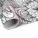 Girly Modern Pink Black White Floral Drawings Wrapping Paper