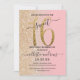 Girly Modern Pink Gold Glitter Ombre Sweet 16 Invitation