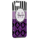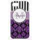 Girly Modern Purple Glitter Damask Personalised Case-Mate iPhone Case