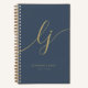 Girly Monogram Calligraphy Initials Navy Gold Notebook