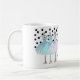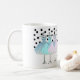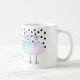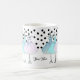 girly monogrammed coffee mug. Blue, pink and turquoise dresses on hangers. Polka dot background Add your name or monogram to personalise it.