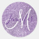 Girly Monogrammed Faux Amethyst Glitter Classic Round Sticker