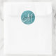 Girly Monogrammed Faux Teal Glitter Classic Round Sticker