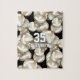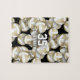 This fun girls' volleyball jigsaw puzzle features a pattern of varied size muted gold, bronze and white volleyballs turned every which way on a black background - the non-white panels are coloured with a light to dark bronze gradient accented with an artsy, girly, floral pattern - customise with volleyball player's name and jersey number - by katz_d_zynes