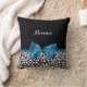 Personalise by adding the name of your teen girl to this trendy black and white leopard print pattern square throw pillow with a stylish classic cobalt blue ribbon tied into a cute girly bow. Flat printed image, not actual ribbon.