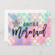 Girly Pastel Ombre Gold Glitter Always be a Mermaid Postcard