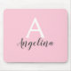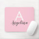 Personalised monogram girly pale blush pink mouse pad with white and grey writing. This pretty mouse pad can be easily personalised with your own custom first name and monogram initial. You can even change the text colour and font style using the customise option.