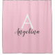 Personalised monogram girly pale blush pink shower curtain with white and grey writing. This pretty shower curtain can be easily personalised with your own custom first name and monogram initial. You can even change the text colour and font style using the customise option.