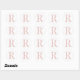 Classy modern serif letter R with a faux pale rose gold glitter effect against a solid white classic round stickers.