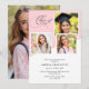 Celebrate a special milestone with this girly photo collage modern graduation party invitation. The design features a soft pink and white color palette with multiple photo spaces to showcase favorite graduation memories. Elegant script typography and a clean layout create a stylish and modern look.