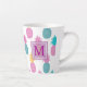 This Girly Pineapple Pattern designed latte mug makes a great personalised gift for a loved one. Featuring a colourful pineapple background with vibrant colours such as blue, purple, and yellow on a white background, easily use Zazzle's text template for filling in your initial. Choose from a variety of fonts, filters, etc. Personalise your latte mug today.
