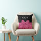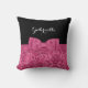 A girly dark pink and black rose floral pattern pillow with a cute ribbon tied into a pretty bow. Any girl would love to have this chic design personalised with their name. Flat printed image, not actual bow.