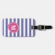 Personalised trendy periwinkle (light purple) stripes pattern and monogram inside a pink abstract circle luggage tag. Customise the front with your monogram letter and add your contact details on the back. Great gift for Mother's Day, Birthday or any special occasion.