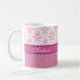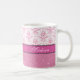 Girly pink and white Damask, pink glitter Name Coffee Mug